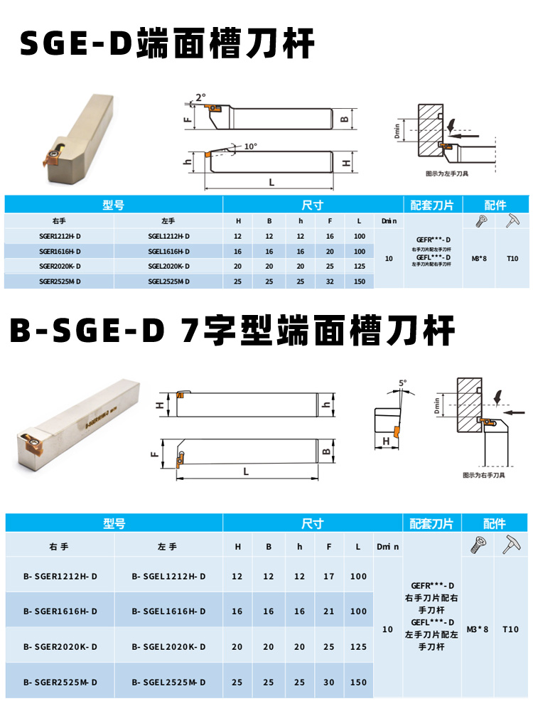 GEF-D端面淺槽刀具,環(huán)槽加工刀具,SGER/L-D刀桿有直插和七字型,刀片GEFR/L-D槽寬范圍0.5-4mm,切深1-4.5mm,