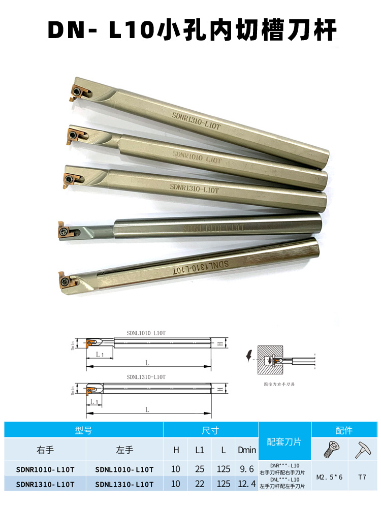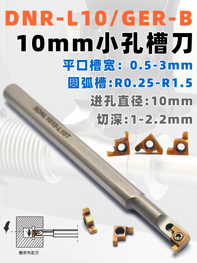 進(jìn)孔直徑10mm內(nèi)孔槽刀桿,切深2.2mm 圓弧槽R0.25 0.40 0.50 0.60 0.75 0.80 0.90 1.00 1.25 1.50,平口槽0.5,0.6,0.7,0.75,0.8,0.9,1.0,1.1,1.2,1.25,1.3,1.4,1.45,1.5,1.6,1.7,1.75 1.8,1.85,1.9,1.95,2.0,2.15,2,25,2.3,2.4,2.5,2.6,2.65,2.7,2.75,3mm;密封槽刀片,可定做內(nèi)孔槽刀刀片。