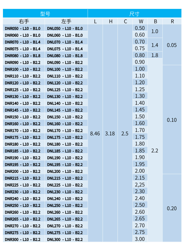 DNR060-L10-B1.0 DNR070-L10-B1.4 DNR075-L10-B1.4 DNR080-L10-B1.8 DNR090-L10-B2.2