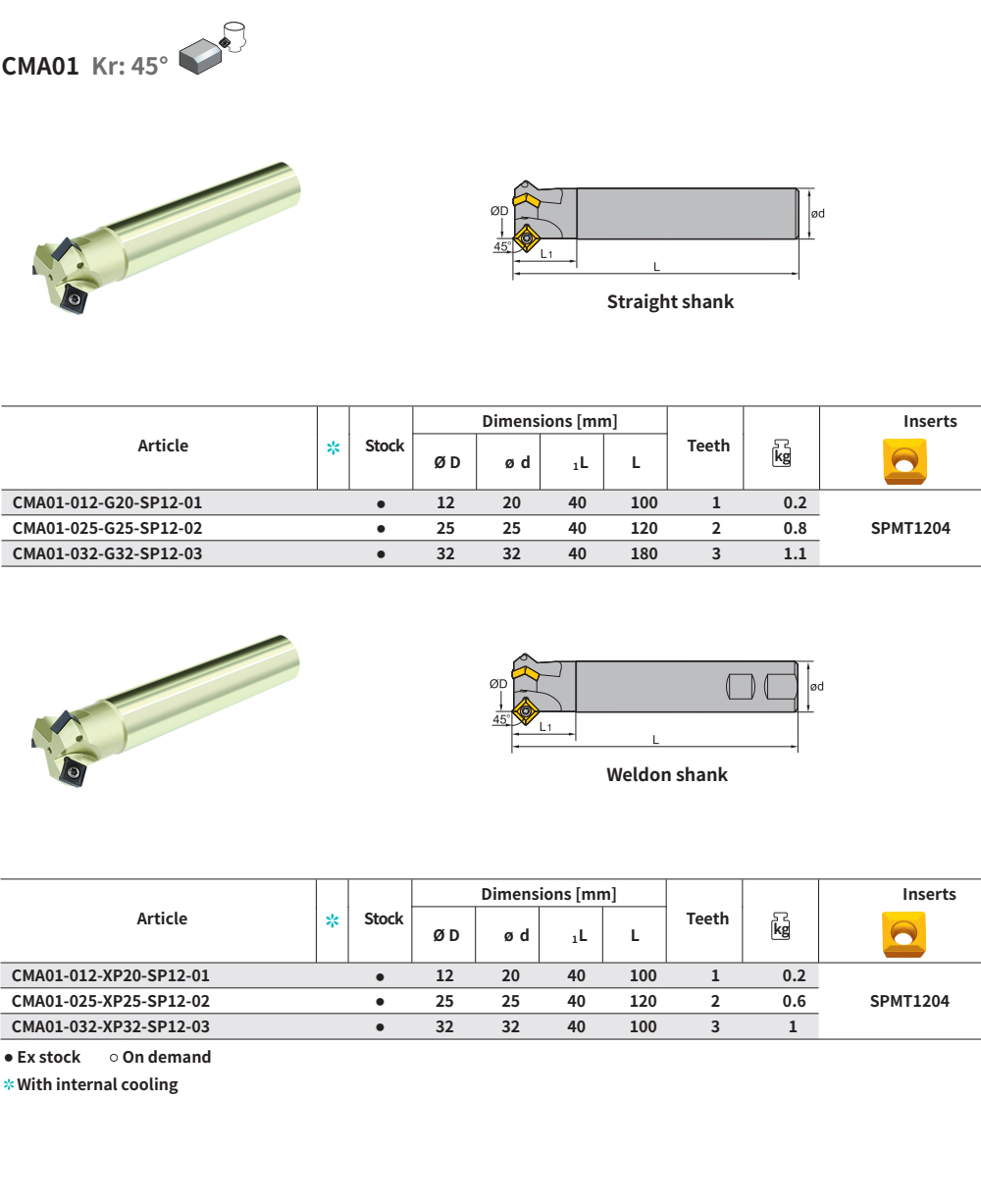 45度倒角銑刀45度平面?zhèn)冗叺菇牵卓诘菇荂MA01系列直徑范圍 12、25、32 mm 適用于鋼、不銹鋼和鑄鐵刀片SPMT120408。刀柄有圓柱直柄,側(cè)固柄兩種可選。