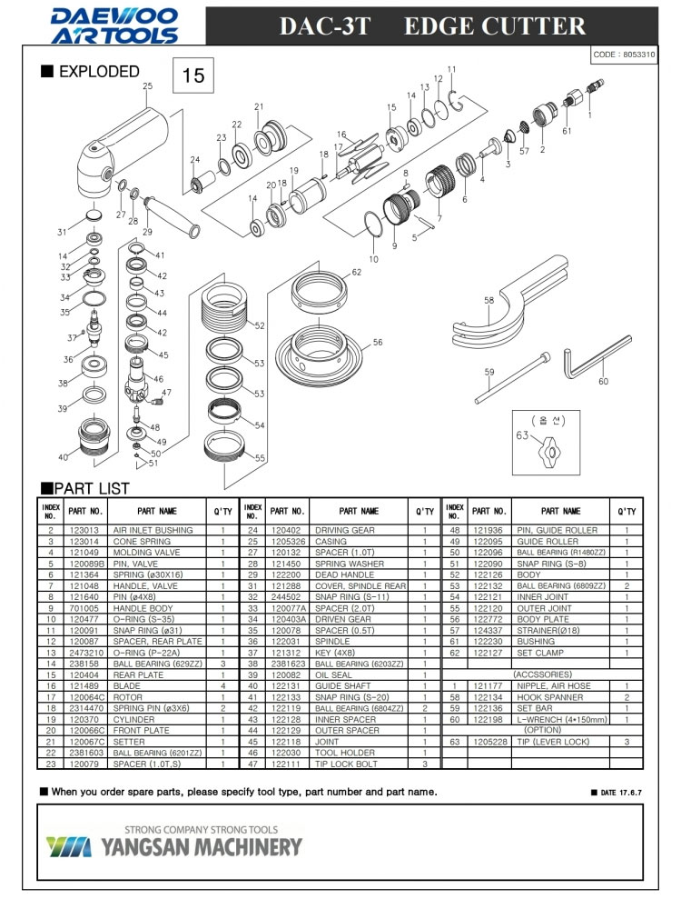 最小半徑(‘R) | HP | W | m/min | EA | RPM | in | mm | Ib | kg | in | ft3/min | m3/min | dB | PSI | kgf/cm2 | |