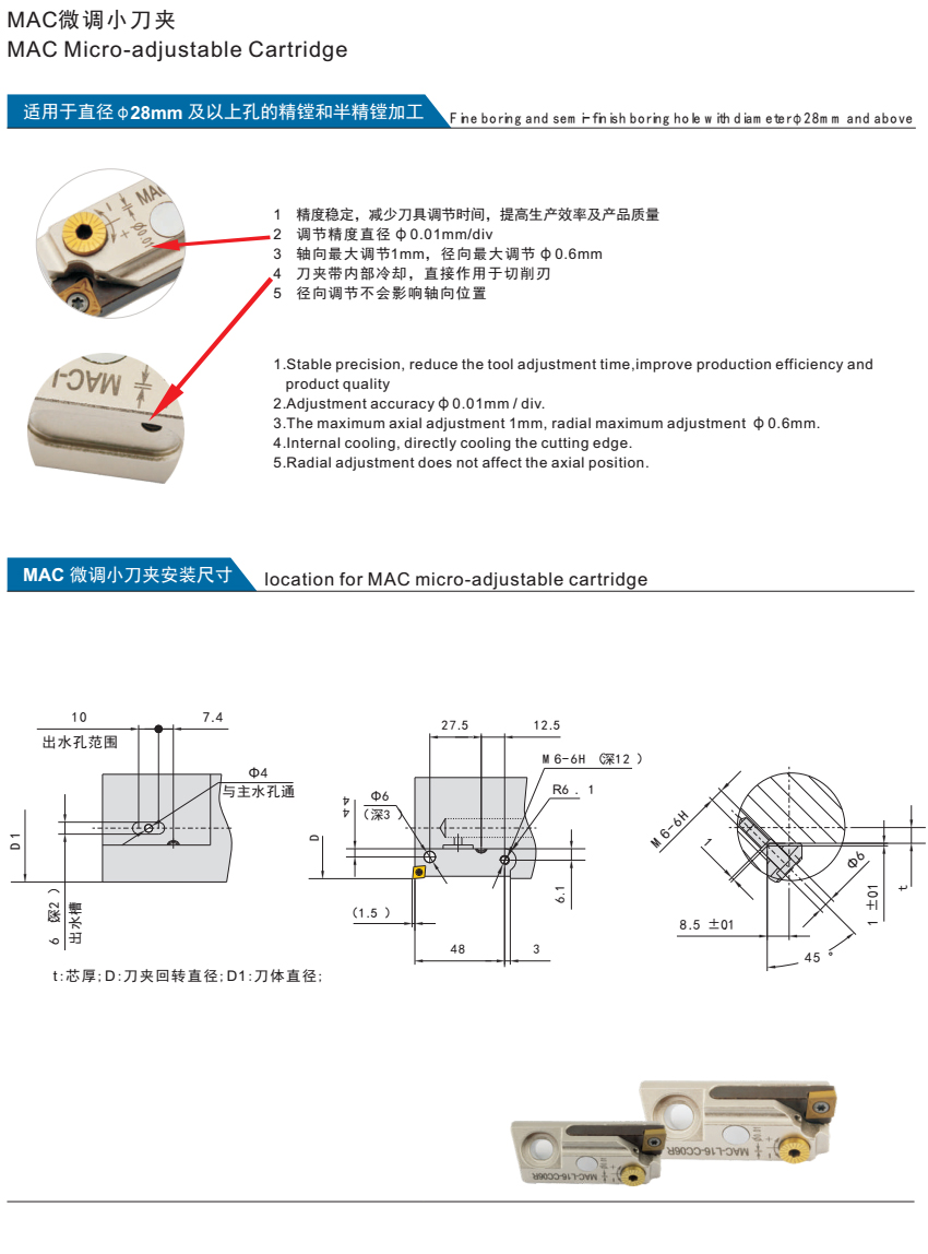 MAC微調(diào)小刀夾適用于直徑φ28mm及以上孔的精鏜和半精鏜加工