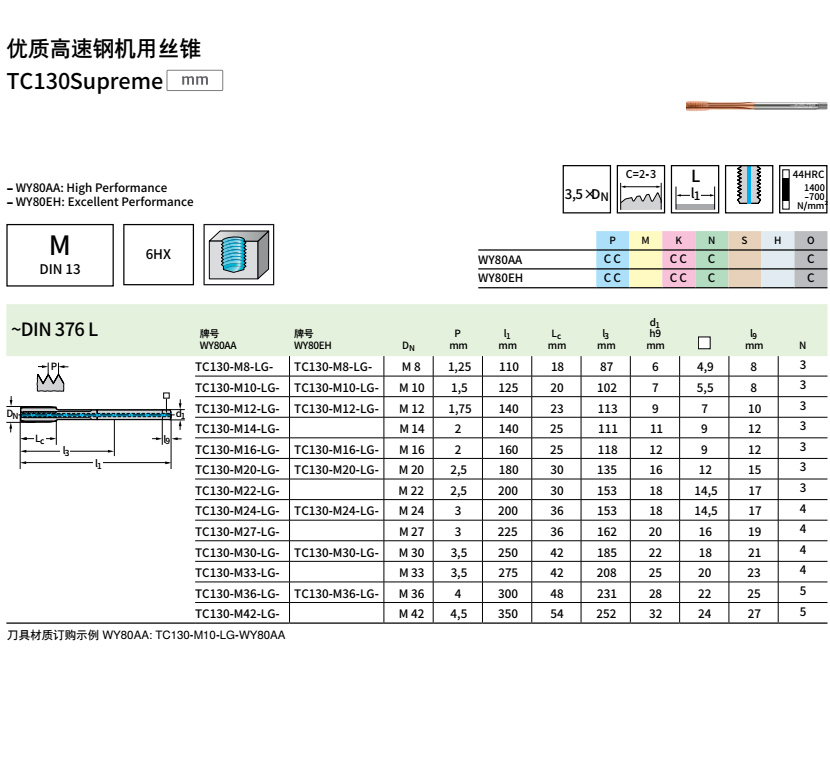 公制粗牙優(yōu)質高速鋼機用絲錐TC130-M4-M42可選