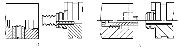 Varilock工具系統(tǒng)是由瑞典山特維克可樂滿公司于1980年研制成的軸向拉緊工具系統(tǒng),如圖a所示,它是雙圓柱配合,起導(dǎo)向及定心作用,用中心螺釘拉緊,模塊裝卸顯得不太方便。